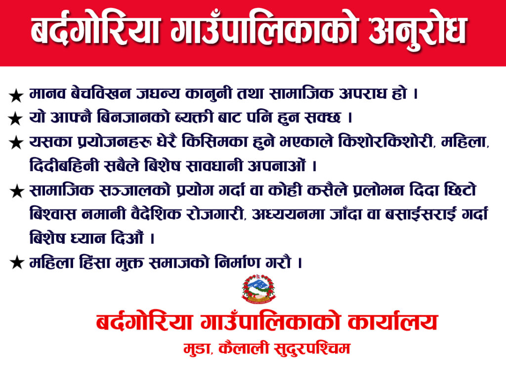 बर्दगोरिया । कैलाली जिल्लाको बर्दगोरिया गाउँपालिकामा जारि बिधालय स्तरीय प्रदेश व्यापी छात्र/छात्रा फुटबल प्रतियोगिताको सेमिफाइनल समीकरण पूरा भएको छ । बर्दगोरिया स्पोर्ट्स एण्ड... पुरा