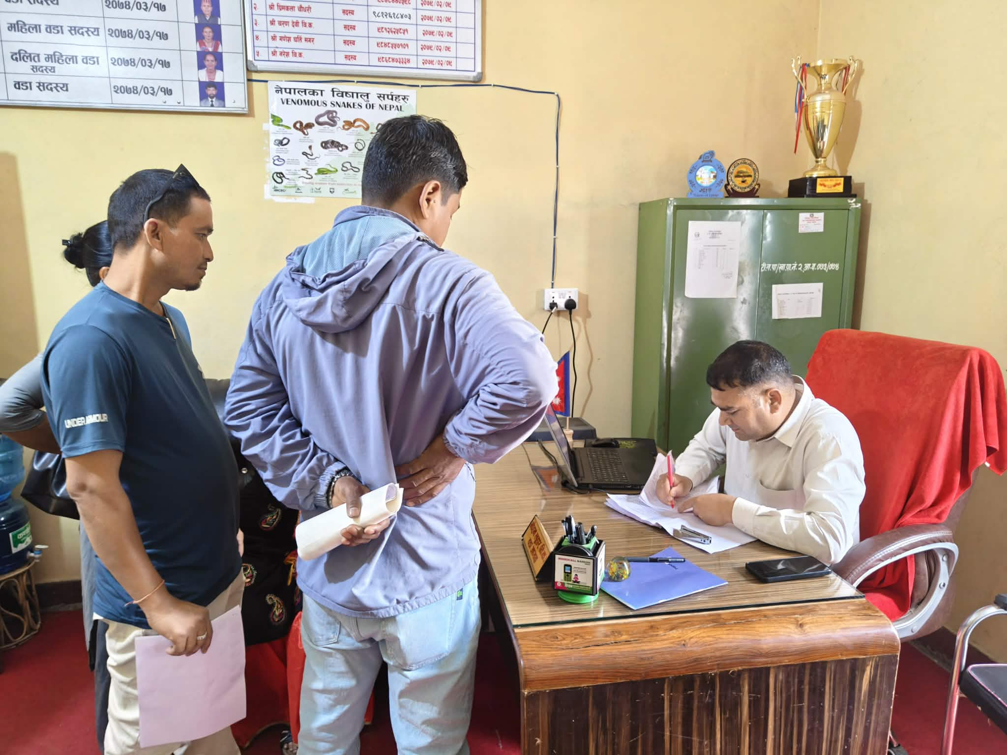 उनी कहिले कागजात रुजु गर्छन् कहिले किबोर्डमा औँला चलाउँदै नागरिकताको विवरण सच्याउँछन्। हेर्दा उनी कुनै तालिमप्राप्त कर्मचारी जस्तै लाग्छन् तर उनी त्यहाँका कर्मचारी होइनन् । उनी त ४६ हजार जनताले विश्वास गरेर जिताएका वडा अध्यक्ष मोहन बिक हुन्।
